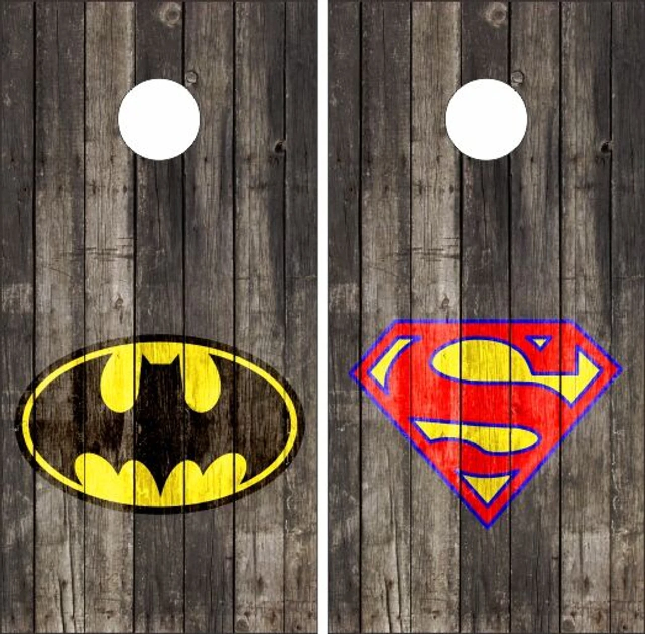 Batman / Superman On Wood Cornhole Wraps – Set Of 2