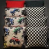 Handmade quality craftsmanship. Bags are double stitched with heavy duty thread and each side is made of premium durable duck canvas for durability and extra strength. Each bag measures approximately 6″x6″ Bags are filled with regulation 16oz. whole corn. Or, you may upgrade to all-weather resin filled bags, which are washable and waterproof.