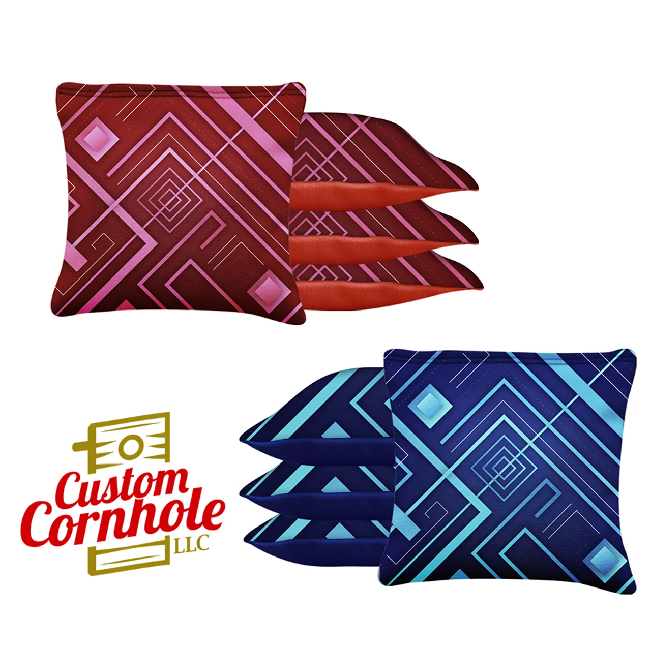 Blue Pink Lines Tournament Cornhole Bags – Set Of 8