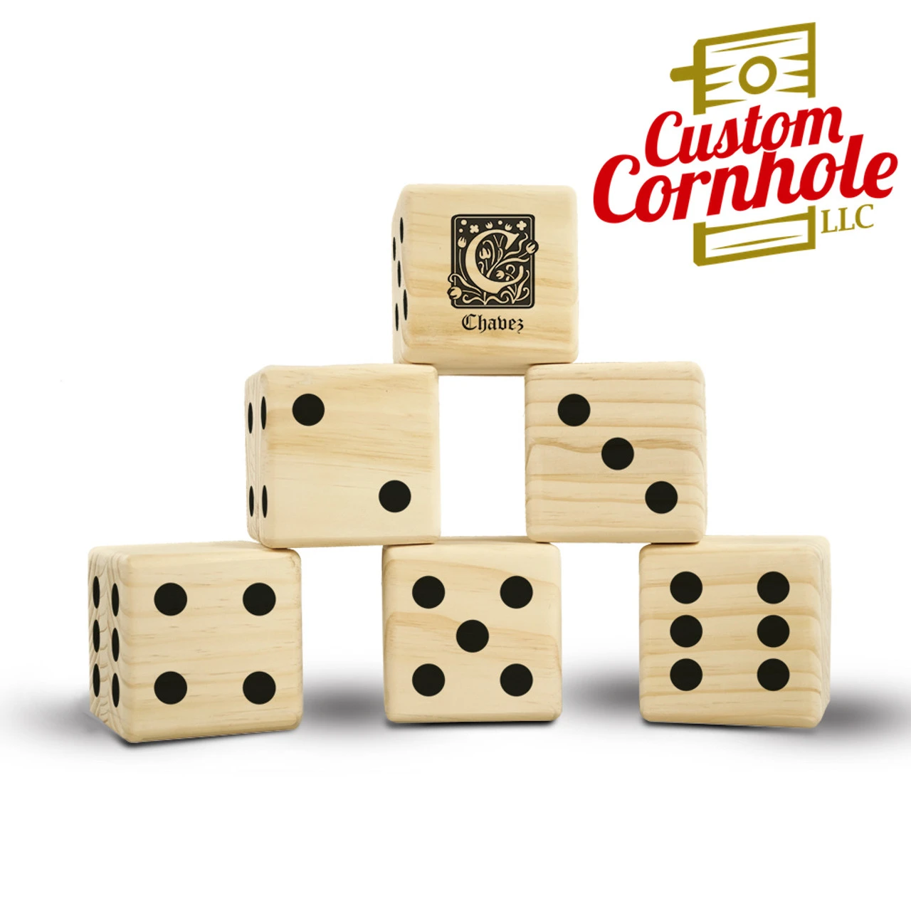 Lawn Dice are versatile in nature and allow for any game-of-odds to be played or the popular Yardzee! They are printed, and itβs hard not to appreciate the raw wood aesthetic, the classic look with sharp design create an up-to-date feel for all to enjoy. The βoneβ on every dice is customized. Lawn dice is sure to grab crowds of all demographics, and will most certainly provide a Promo Success.