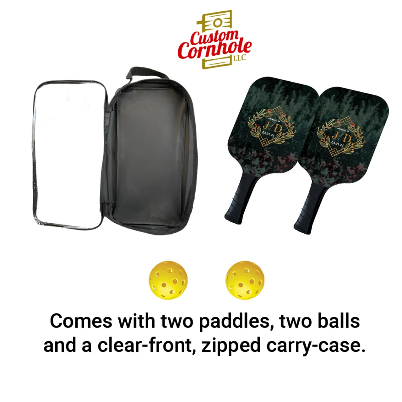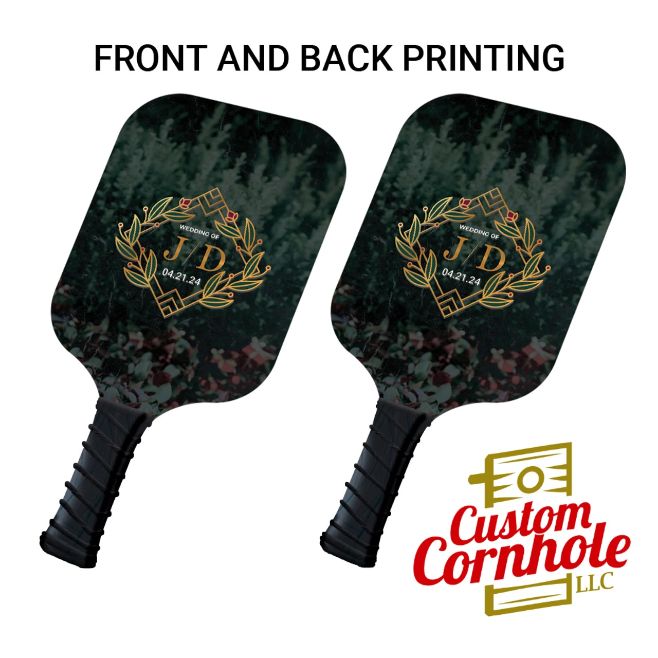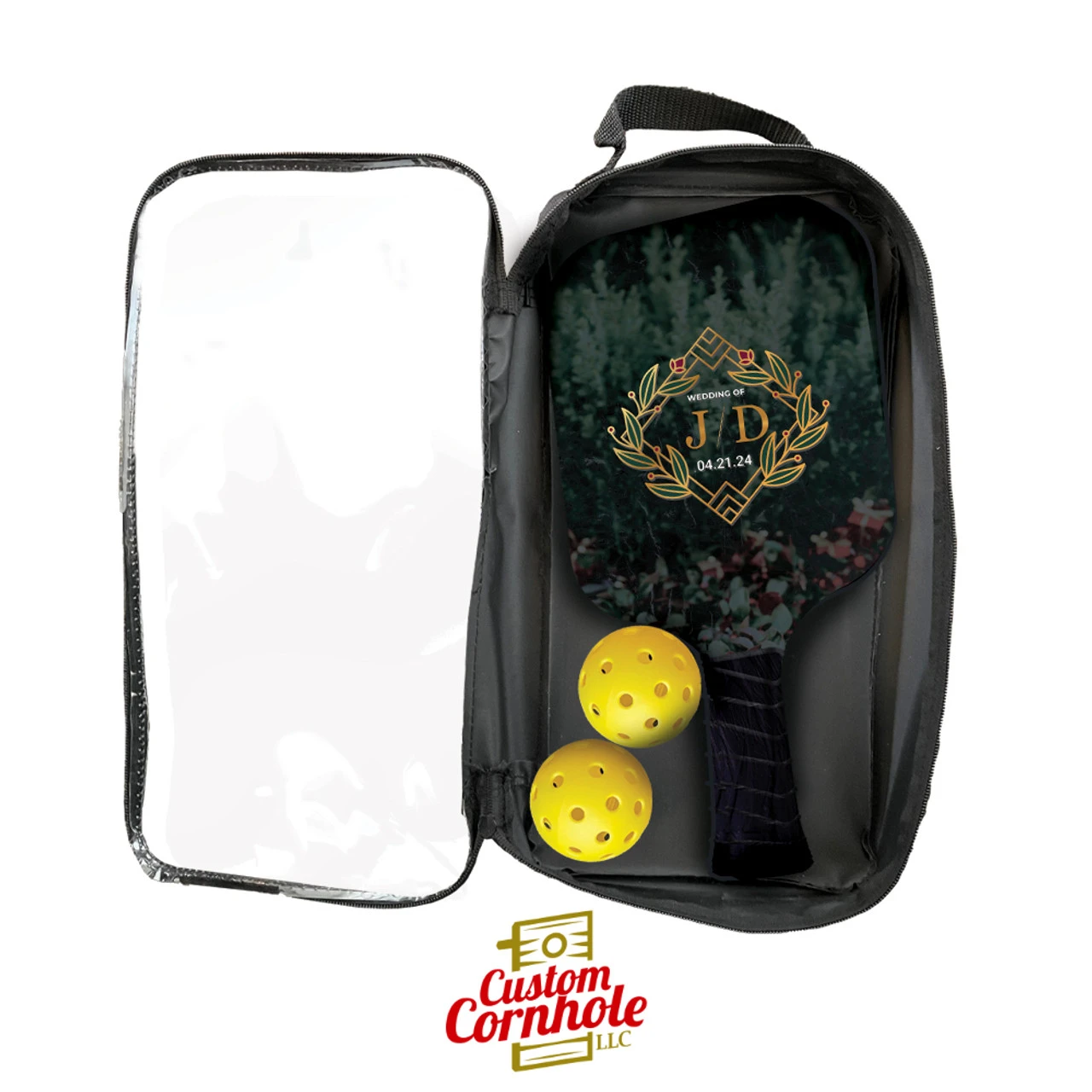 Our custom pickleball set comes with two paddles that are sized at 7.5″ by 15.5″, two wiffle balls and one carry bag. Pickleball is a fun game that mixes the elements of badminton, tennis and ping pong. This can be played indoors or outdoors. The imprint is a UV direct full bleed on both sides of each paddle. Rubber edge molding is around the perimeter of the paddles along with an athletic grip tape on the handle.