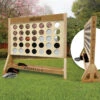 This Lawn Dice set come with 6 wood, 3.5″ square dice that fit nicely into the carry bag and tumbler bucket.