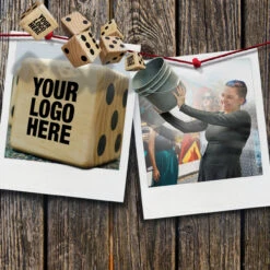 Lawn Dice are versatile in nature and allow for any game-of-odds to be played or the popular Yardzee! They are printed, and itโs hard not to appreciate the raw wood aesthetic, the classic look with sharp design create an up-to-date feel for all to enjoy. The โoneโ on every dice is customized. Lawn dice is sure to grab crowds of all demographics, and will most certainly provide a Promo Success.