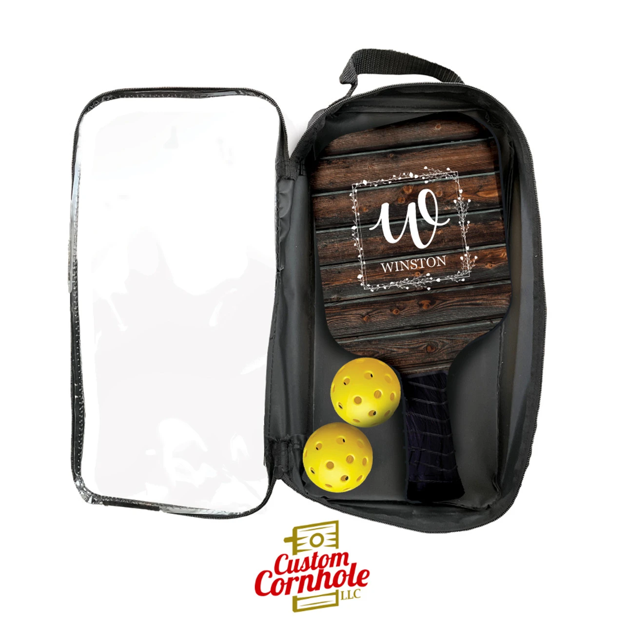 Our custom pickleball set comes with two paddles that are sized at 7.5″ by 15.5″, two wiffle balls and one carry bag. Pickleball is a fun game that mixes the elements of badminton, tennis and ping pong. This can be played indoors or outdoors. The imprint is a UV direct full bleed on both sides of each paddle. Rubber edge molding is around the perimeter of the paddles along with an athletic grip tape on the handle.