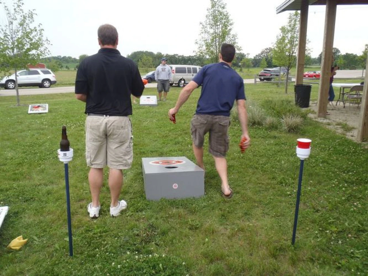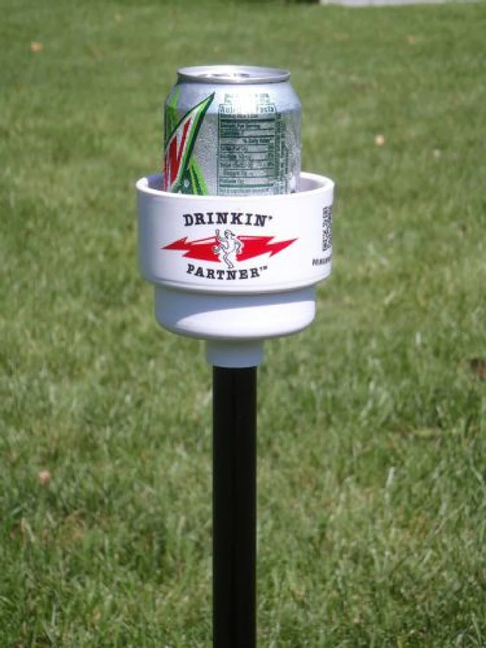The Drinkin’ Partner is great when playing outdoor games like cornhole (bag toss), horseshoes, ladder golf, washers, or anything else you can think of. The metal spike at the end lets you insert your Partner into the ground wherever you want. The cup of the Drinkin’ Partner is versatile enough to hold a wide variety of bottles, can, cups, and glasses so it’s great for backyard parties and tailgaiting.