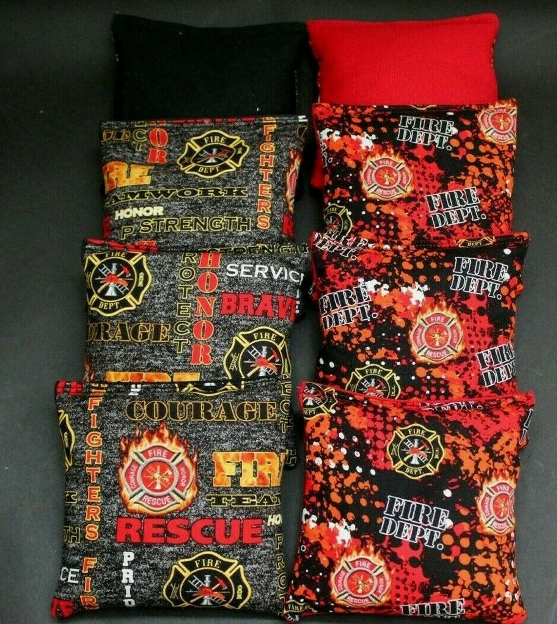 Handmade quality craftsmanship. Bags are double stitched with heavy duty thread and each side is made of premium durable duck canvas for durability and extra strength. Each bag measures approximately 6″x6″ Bags are filled with regulation 16oz. whole corn. Or, you may upgrade to all-weather resin filled bags, which are washable and waterproof.