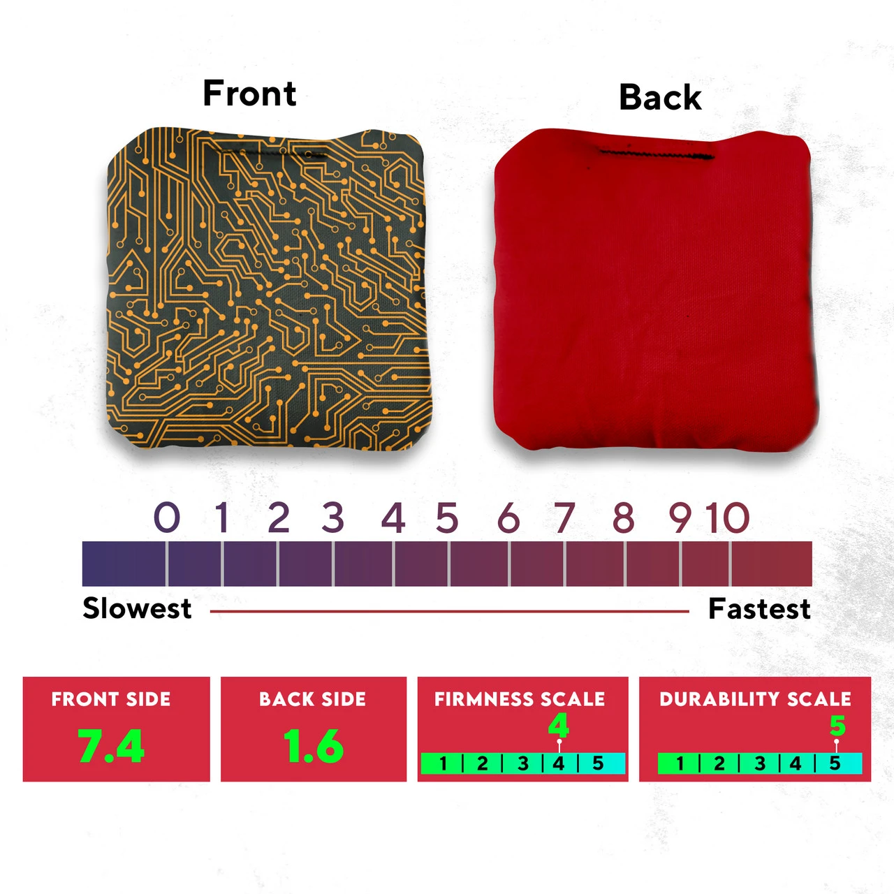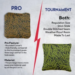 Professional Regulation Cornhole Bags’ dual-sided material construction advances playing strategy and control, allowing you to grab or glide on the board. With various graphic options available, sets can be mixed and matched to fit any style.
