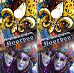 Our Tailgate Cornhole Set includes two 2ft by 3ft scoring platforms and two sets of four throwing bags. The scoring platform is all wood, the landing surface is 1/4in MDF which sits on a frame constructed of 1″ by 2″ pine wood. After the scoring platform is painted with black exterior latex paint, we apply the artwork with adhesive vinyl, and then protect the artwork with a coat of polyurethane. The throwing bags are 6″ by 6″ duck cloth and filled with 10oz of whole corn. Synthetic filler is also available for an additional charge. Choose between seventeen different bag colors options.