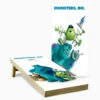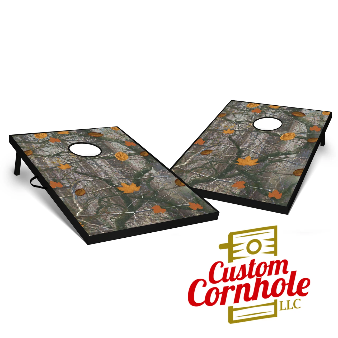 Our Tailgate Cornhole Set includes two 2ft by 3ft scoring platforms and two sets of four throwing bags. The scoring platform is all wood, the landing surface is 1/4in MDF which sits on a frame constructed of 1″ by 2″ pine wood. After the scoring platform is painted with black exterior latex paint, we apply the artwork with adhesive vinyl, and then protect the artwork with a coat of polyurethane. The throwing bags are 6″ by 6″ duck cloth and filled with 10oz of whole corn. Synthetic filler is also available for an additional charge. Choose between seventeen different bag colors options.